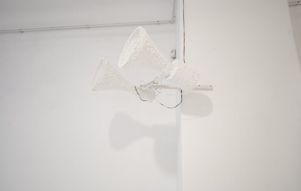 Petra Vehviläinen is a visual artist based in Helsinki who works with sculptural installations, drawing on traditional craft techniques such as forging, blacksmithing, metal casting, and weaving. Her practice often features works in which discarded or found objects and materials form spatial weaves. The works explore themes rooted in posthumanist and new materialist thought, emphasizing the active role of matter, materials, and space in these processes. Vehviläinen’s works have been presented not only in gallery settings but also site-specifically in urban and natural locations, both in Finland and abroad. She holds a MFA in Sculpture (2024) and a MA in Directing (2013) from the University of the Arts Helsinki. Her projects have been supported by the Alfred Kordelin Foundation, the Finnish Cultural Foundation, the Arts Promotion Centre Finland, and the Kone Foundation. In 2024, she was awarded the Grönqvist Scholarship by the Hélène and Walter Grönqvist Foundation to support her artistic work. www.petravehvilainen.com IG: @petralottiemilia