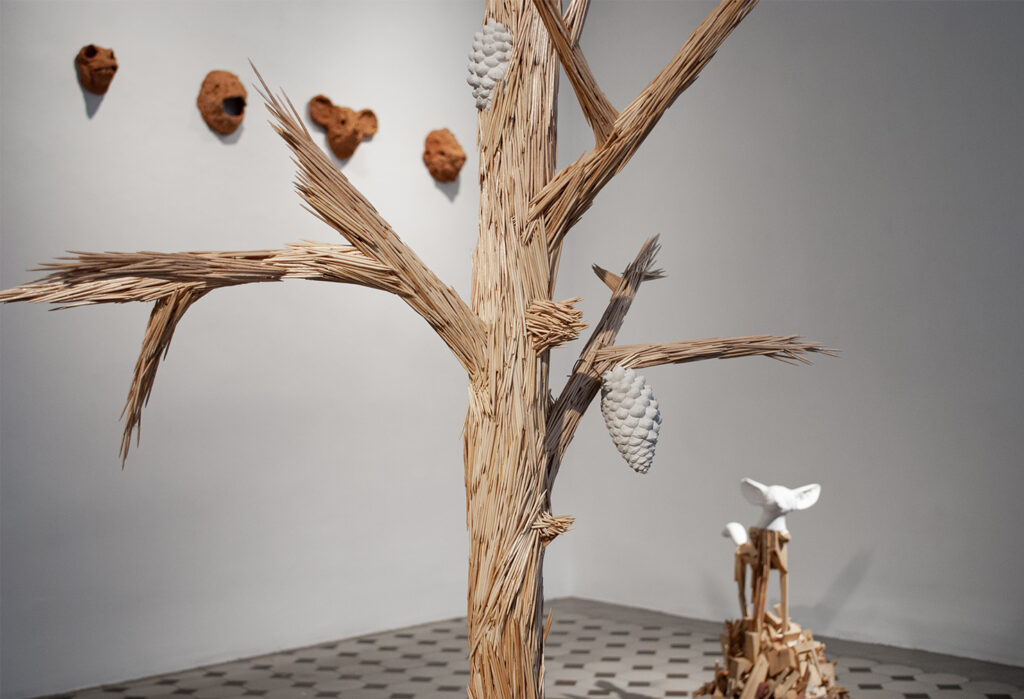 Amuse is a collaboration between two sculptors, exploring what play may mean for them. The exhibition takes shape through material, spatial and functional means and actions. The result is an ongoing negotiation of thoughts, feelings and ideas, present in sculptural form at Hobusepea Gallery.
